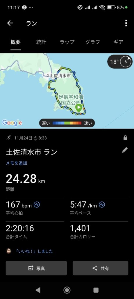 投稿日: 2025年11月25日2025年11月25日 投稿者: 電子ブレーカー西岡足摺半島一周走破 こんにちは!電子ブレーカー西岡です。 みなさん3連休いかがお過ごしでしょうか!?家でゆっくりされる方、紅葉見に出かける方様々だと思います。 私は妻の実家の土佐清水市足摺岬に子供を連れて帰省していました。 足摺に行くと恒例?の半島を走ることにしています。 天気もよく、快晴でとても気持ちよかったです! 次は大晦日走ります!