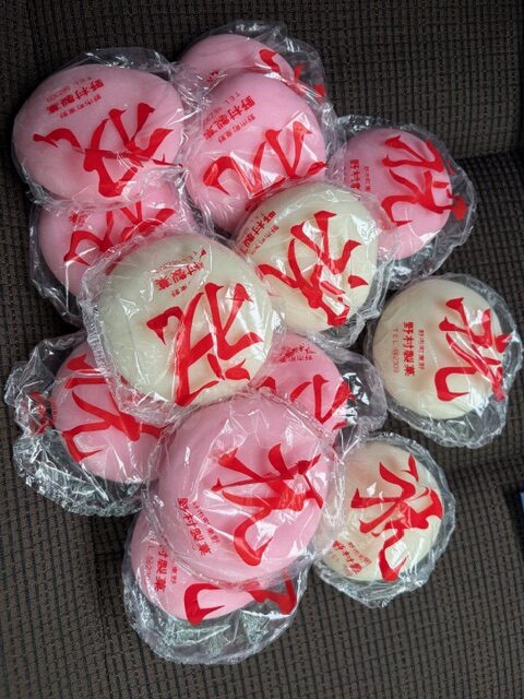メーデーの後は、恒例のおたしみ『餅投げ』